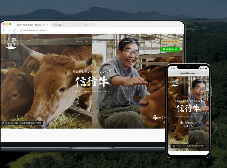 企画立案 代理店 制作ディレクション メディアミックスプロモーションクライアントの川津食品様が発信するブランド「信行牛」に関するヒアリングからメディアを絡めたプロモーションのためにブランドサイトを制作。